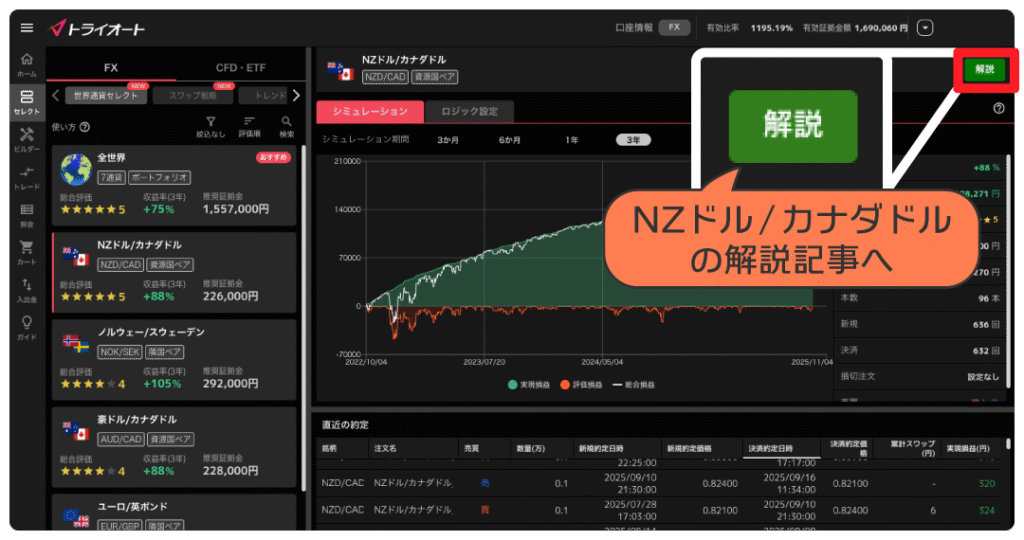 トライオートFXは、数字やチャートの見た目が整理され、解説記事など運用のヒントになる機能が充実した「理解しながら始められる」自動売買ツールです。