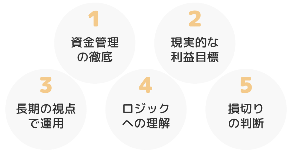 ただし、自動売買といえども「任せきり」で安心というわけではありません。資金管理の仕方や利益の目標設定、そして長期的に運用を続ける姿勢など、押さえておくべきポイントがあります。