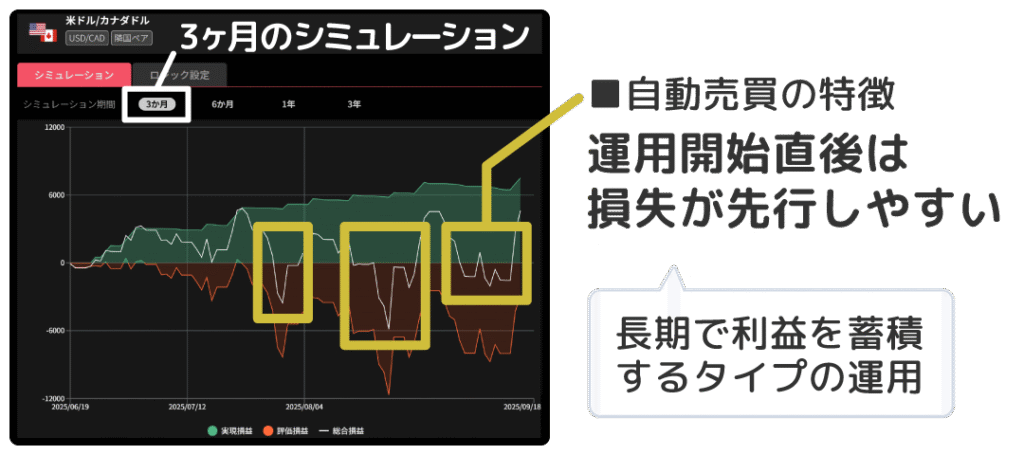 運用を始めてすぐのマイナス損益。不安になる人もいるかもしれませんが、自動売買では一般的なことです。