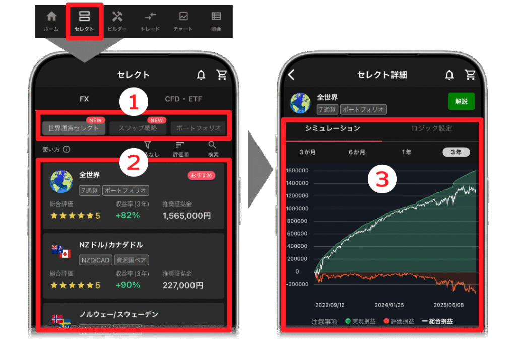 - ログイン後は「セレクト」で戦略を選ぶだけでスタート可能