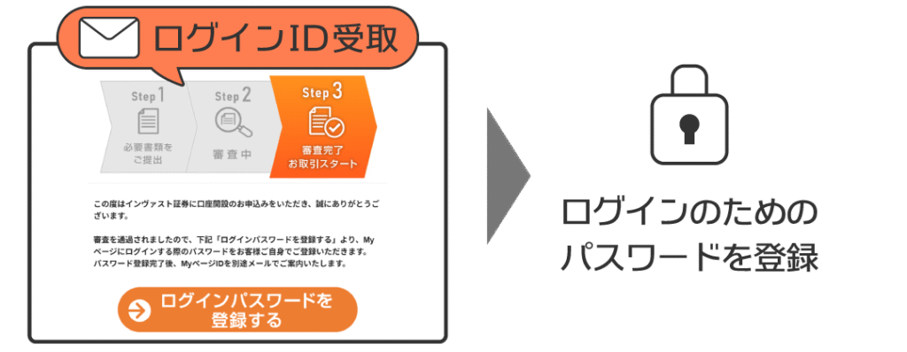 オンラインで手続きして、書類の審査に無事通過すると、メールでログインIDが届きます。それを利用してMyページにログインし、自身でパスワードを設定すれば、ログインできるようになります。