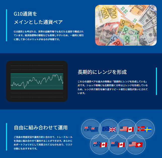 つまり、その場その場の相場状況に左右される傾向の高い裁量トレードを“安心の自動収益”で下支えするという考え方です。定期的な利確に加えて、自分の判断による利益獲得の達成感も得られるため、トレーディングの楽しさと満足感をより深く味わうことができます。