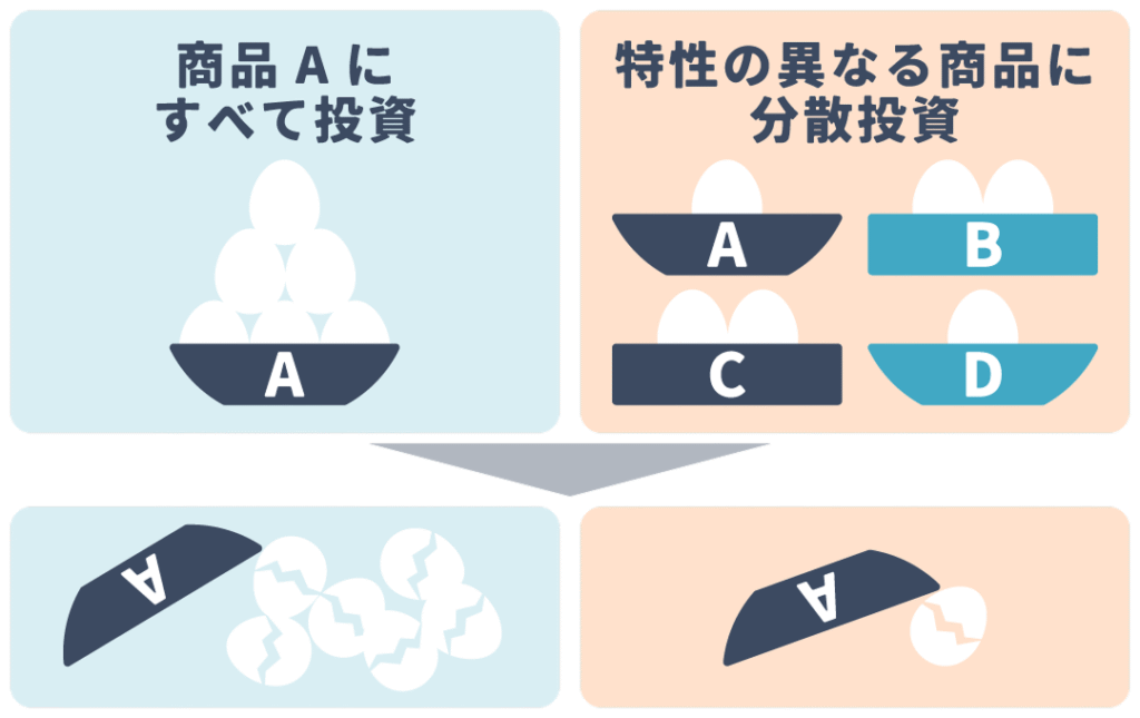 資産運用の世界では、「卵を一つのカゴに盛るな」という格言があるように、異なる商品を組み合わせておけば、資産全体の値動きを安定させられます。