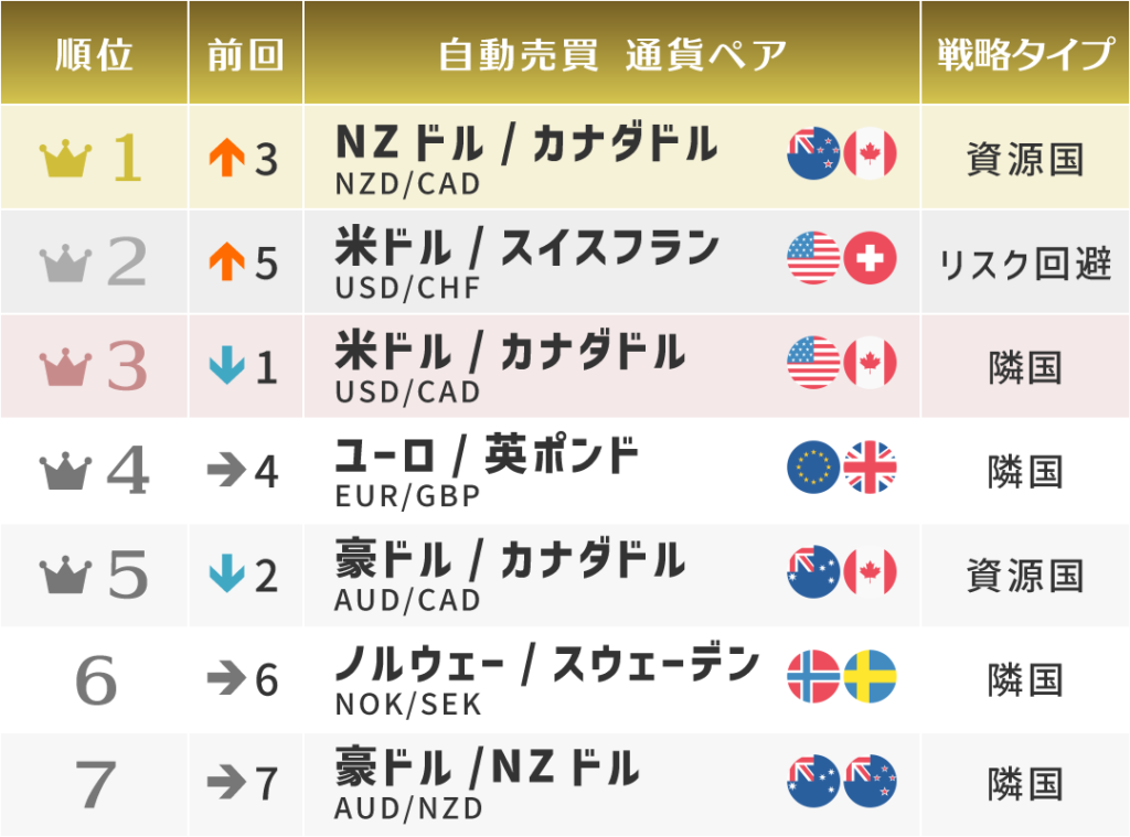 NZドル×カナダドルが返り咲きで1位獲得!