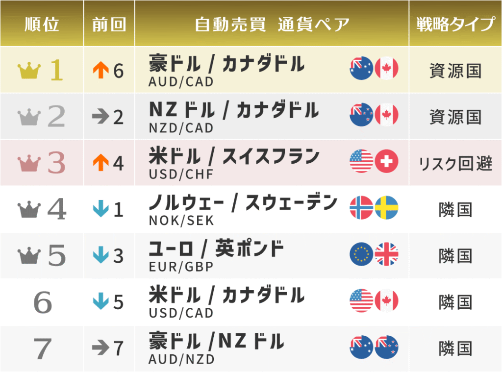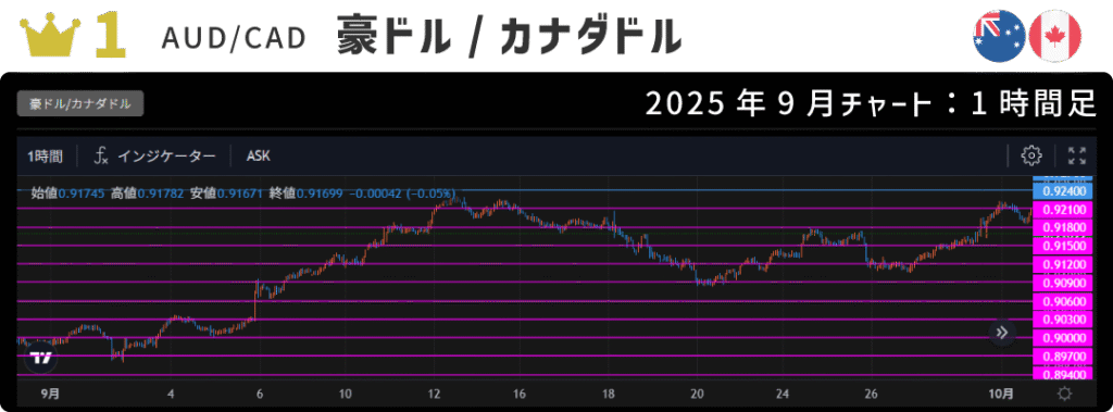 9月の収益ランキングでは豪ドル/カナダドル(AUD/CAD)がトップ、NZドル/カナダドル(NZD/CAD)が2位となりました。